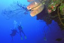 For these dives, I took along my Nikonos V, Ikelite SS200, and a pair of lenses. All underwater photos were shot using a combination of either 15mm and 20mm lenses, and ISO 100 and 200 color print film. I used color print film for its ease in creating Kodak Photo CDs, my digital storage medium of choice (wow, those were the days!). None of my photos were taken with Cheese Whiz canisters, even though it is said "16 generations of cheese food fish and they are still going strong, it can't be bad for them". I just don't buy it. Never have. The nice part was that I did not see anybody using canned cheese to attract the fish for their photos even though Cathy Church had cheese for sale in her shop